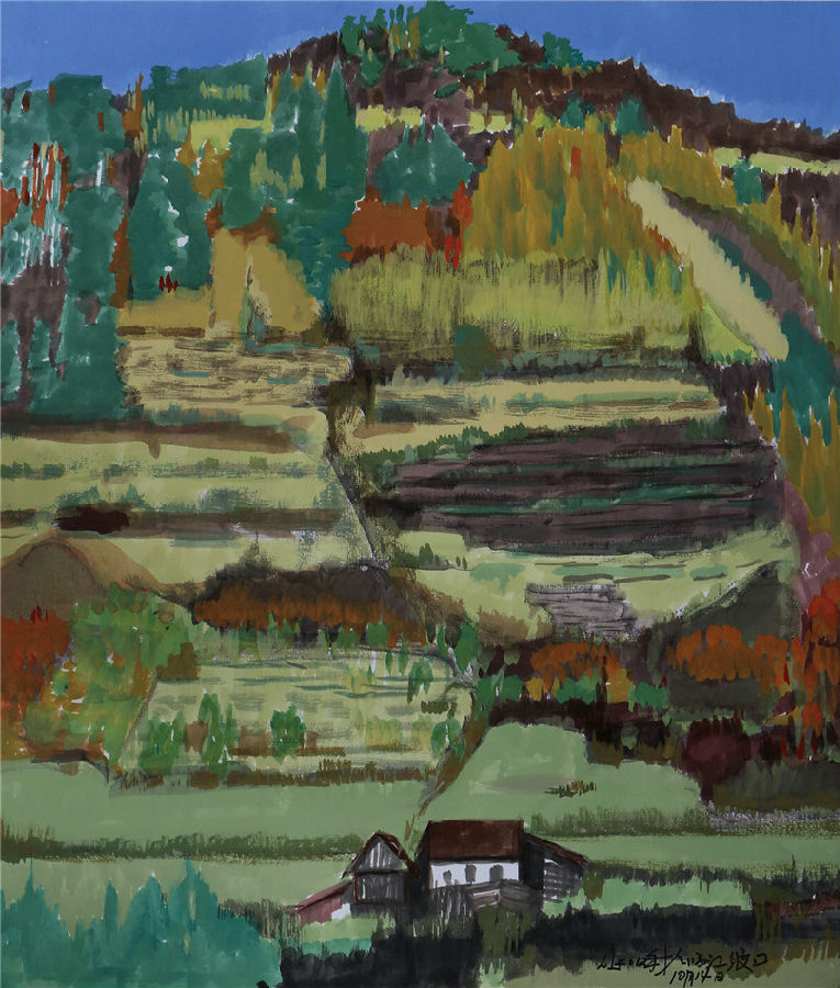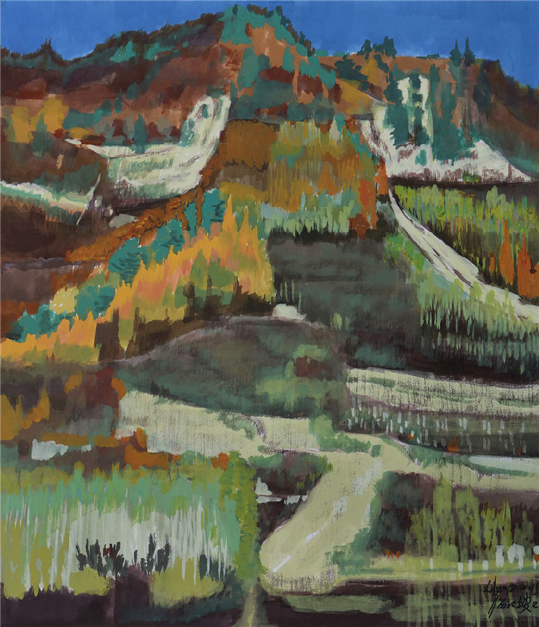 長白秋韻(彩墨紙本) 李連志 作