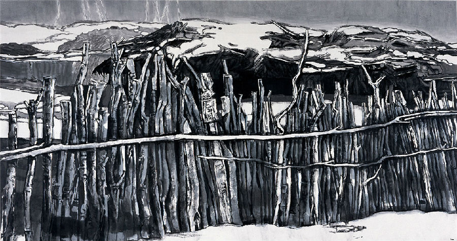 有風景的土地·籬笆(水墨紙本) 李連志 作