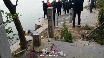■現場可見碎石塊19日9時許,廣西桂林市疊彩山景區內,正在準備乘船的8名遊客被滾石砸中,4人當場死亡,3人因傷重不治身亡。事故遇難人數目前已升至7人。