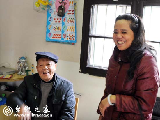 老臺胞程冀達見到“臺胞之家”來人慰問 開心地笑了 攝影/鄭嵐