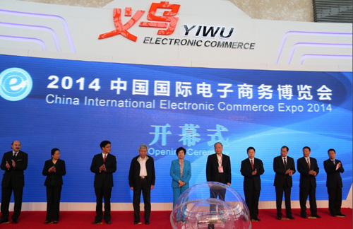 4月10日-12日,由商務部、工業和信息化部指導,浙江省人民政府主辦,中國國際電子商務中心、中國電子商會、義烏市人民政府共同承辦的2014中國國際電子商務博覽會(以下簡稱博覽會)在義烏國際博覽中心舉辦。商務部部長助理王炳南出席了本次博覽會同期舉辦的“第五屆APEC電子商務工商聯盟論壇”並致開幕辭,中國電子商會會長曲維枝、商務部電子商務和信息化司司長李晉奇、中心主任朱小良出席博覽會開幕式。海關總署、浙江省、金華市、義烏市等相關領導也出席了博覽會開幕式。